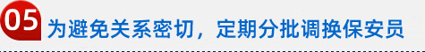1、為避免保安員與員工關(guān)系過(guò)于密切影響執(zhí)法力度,可根據(jù)甲方要求,定期分批調(diào)換保安員。